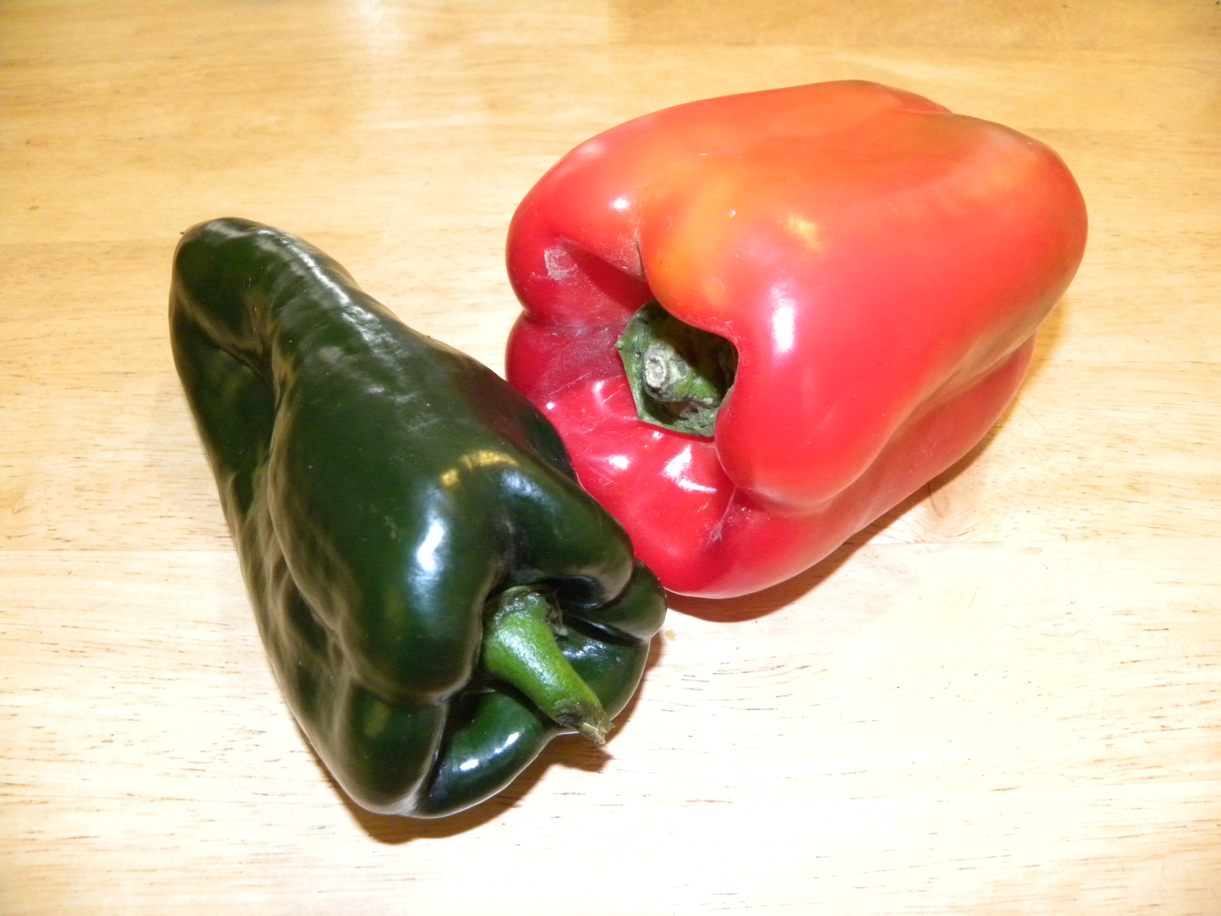 この写真の左の緑色のペッパーを使った。右はレッドベルペッパー。