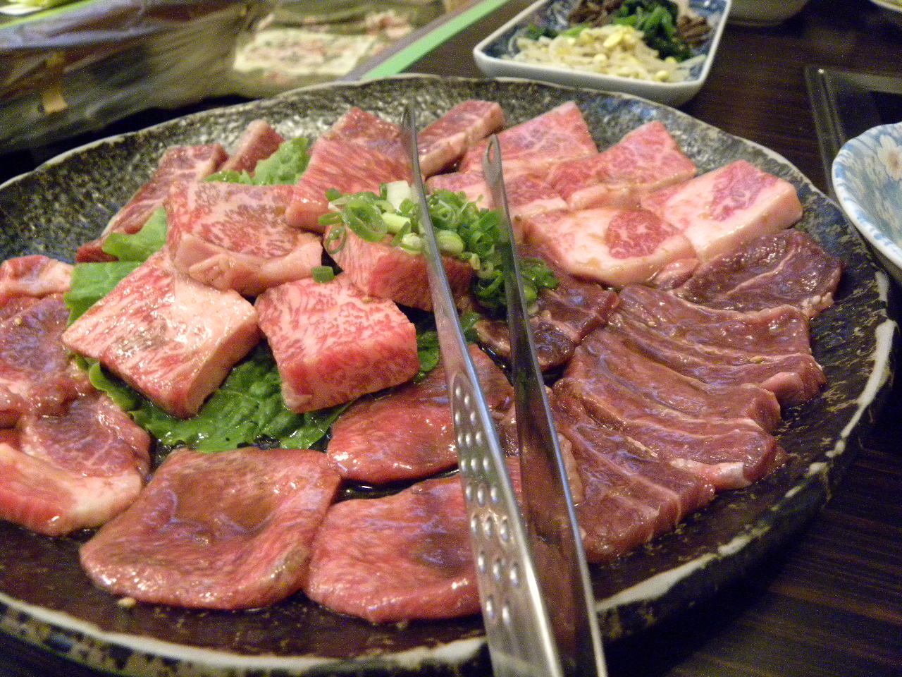 肉はさすがによい肉を使っている。上の写真は肉赤身の折り合わせ。たしかい美味い。ふだんよく行くSanta Claraのコリアンレストランより、肉の処理もいいし、下味のタレも美味いのだろう。